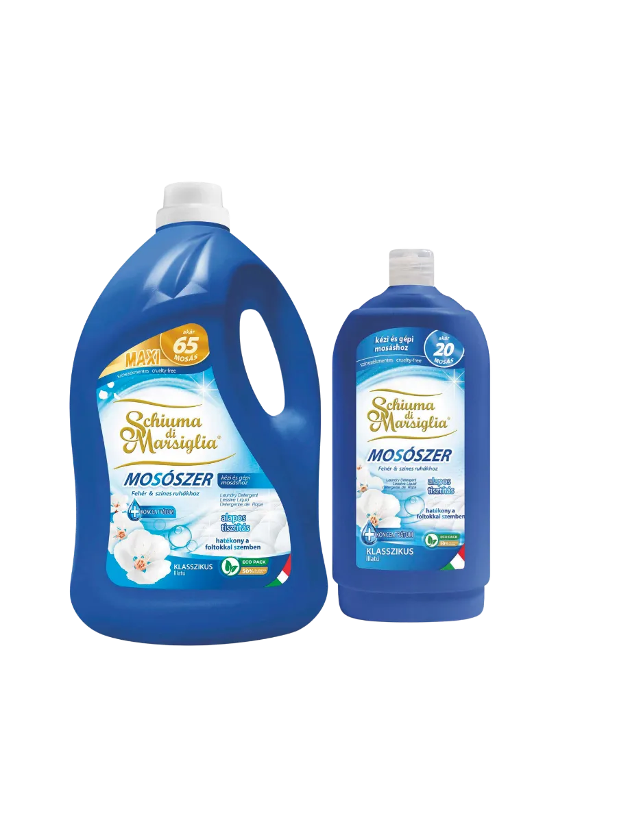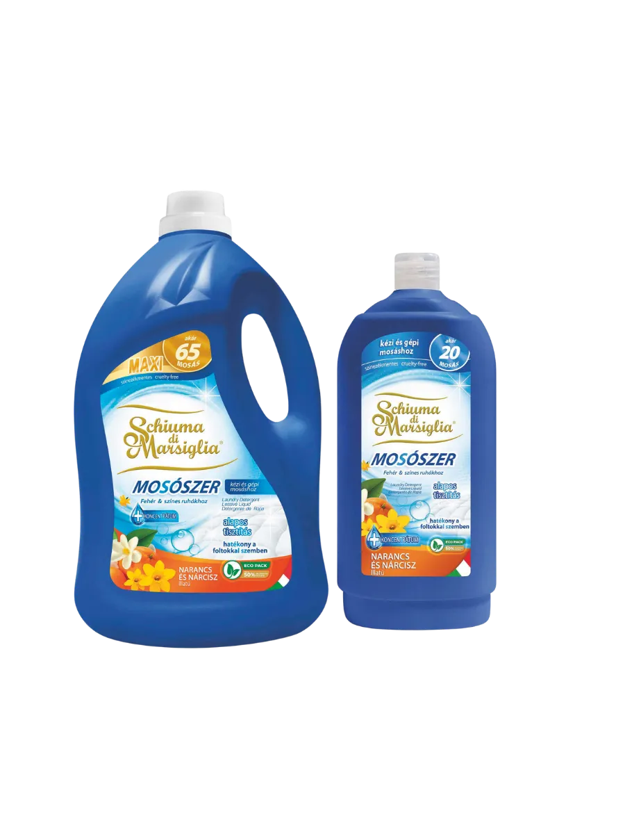 Gazdaságos maxi kiszerelés: akár 65 mosás egyetlen utántöltőből.